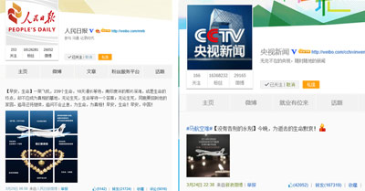 央视官方微博在22:00即发布了“#马航空难#【马来西亚总理纳吉布宣布马航MH370航班坠毁于南印度洋】”的快讯。新京报、南方都市报、东方早报等市场化媒体官微先后发出类似的消息。