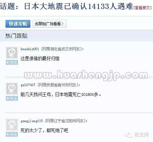 资料图:当年网易新闻报道日本地震的新闻专题后,中国网民的热门留言谩骂叫好一片。