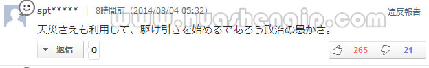 (以下日本网民留言按照支持数排序,摘录支持人数最高的20件回复,无任何删减,可以客观的反应出日本网民的主流意见)