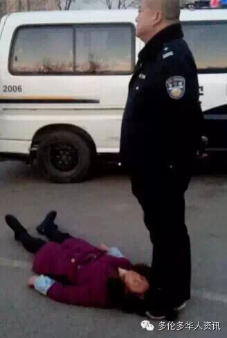 “他 一边骂一边把我婶往地上摁,然后蹲那儿用膝盖顶住我婶肚子,一只手抓住我婶头发,一只手往一边拧我婶的脖子,后来我看我婶躺地上不动了,警察就用一只脚踩 住我婶的头发,我婶一直躺地上不动,他踩一会还换了只脚继续踩,持续了二十多分钟,又过来一辆车下来几个警察才把我婶抬起来扔到警车上,当时我婶不动了, 脚在外面,他们就又朝里推了推,推进去之后开着车走了。我一边拍视频一边躲着警察,他们不断追着我要手机,我跑得快,屏幕都撞树上撞碎了。”孟林昨天下午 对大河报记者说。