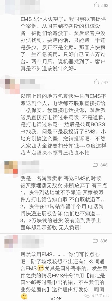 接下来给你们看下群众们对EMS的血!泪!控!诉!