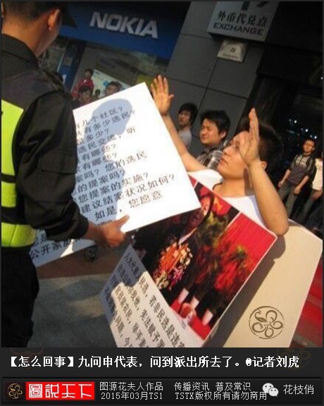 #声明# 因西安三八散步举牌,西安有一网友失联。 无眠声明如下: 1,整个活动是我策划和组织的。 2,如果不尽快恢复他的自由,我明天早晨9点到省政府门口举牌,然后步行到钟楼举牌抗议。 3,如果有确切消息,我会去他所在的派出所,换他自由。 4,请放了他,有事来找我。谢谢。 无眠,2015.3.8,7:30。