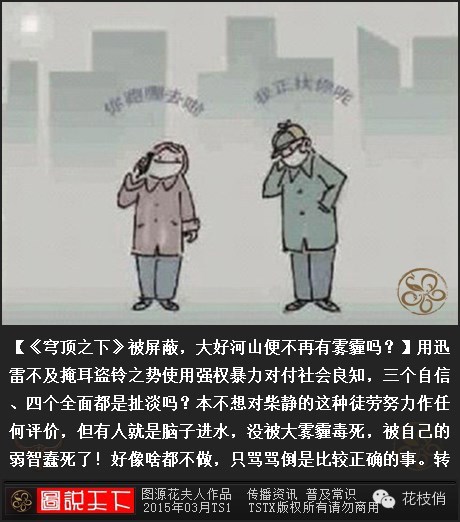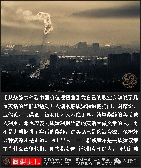【柴静的视频若写成“申论”答案】一,雾霾真不好(有共识)。二,治理确太难(要理解)。三,人人有责任(共罪)。四,别光赖政府(推责任)五,大家一起来(分责任)。六,前路很光明(中国梦)。我不相信柴阿姨有阴谋,但她片子很聪明地符合统治者的思维,这也是能默许传播的原因。总之做了件好事。3月3日 09:55 全部转播和评论(111)钟子期: 方律分析到位,为啥被默许传播?为增税与经济衰退铺垫一下,符合有司政治需要,转移民怨!(如北京前些天开收的扬尘税,未来经济衰败说成治理代价)方强律师