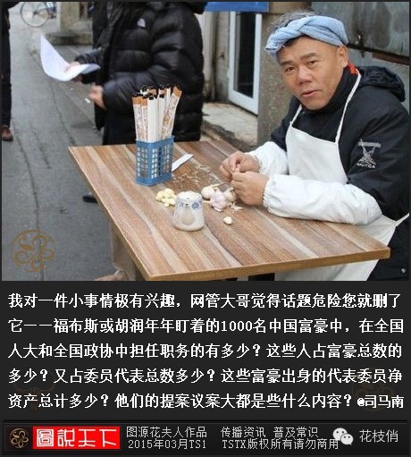今日媒体报道我在浙江代表团的观点有误,在此更正:1、2%的企业交了90%的税,而不是20%的企业交了90%的税。我司全国各地分公司汇总的行政收费500多项而不是税收500多项。2、无锡广播电视台要我司赞助3.15活动17万,我认为不妥,工作人员担心会被曝光,我说要曝就让它曝好了。2015年3月7日星期六今天