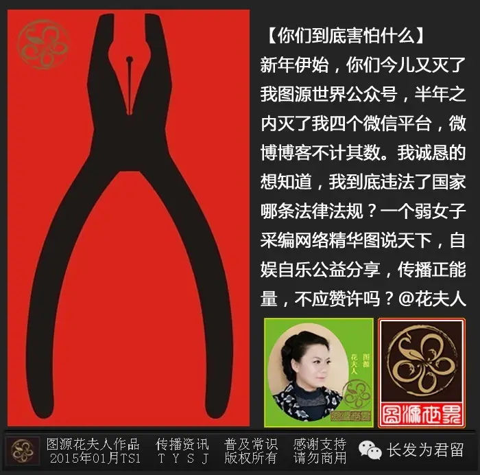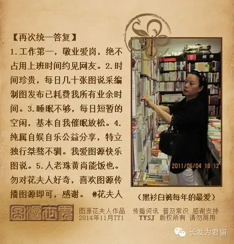 我从九十年代末开始上网冲浪,混迹于各大聊天室、BBS论坛、QQ的最早账号是五位数,网名用过无数个,目前图源花夫人也成了敏感词,启用图源华夫人。当然也少不了被“喝茶”……我希望下次喝茶是在环境优雅的咖啡厅或酒楼品茶赏花,谢绝“帅哥宝宝”再次来学校找我领导同事和学生的麻烦,一人做事一人当,我的所有网络言论和他们无关。