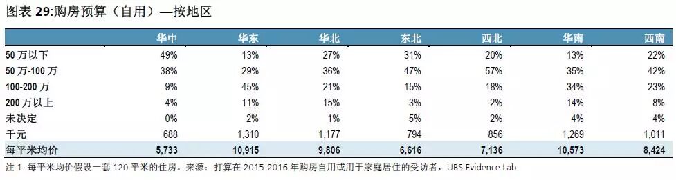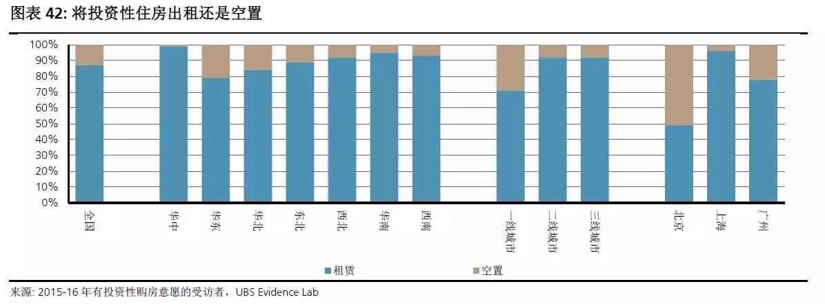 对于2015-2016年,华东地区有三分之一的潜在购房者以投资为目的,华南和华北在这方面分列二三。在所有地区和所有层次的市场中,投资型购房者的预算都高于自用型购房者,部分原因可能是他们更倾向于在市中心购房。不过,在北京和上海,投资性购房预算稍低于自用性购房预算。绝大多数投资型购房者都打算将房屋出租。相对而言,在华东及北京,打算将房屋空置的投资型购房者较多。