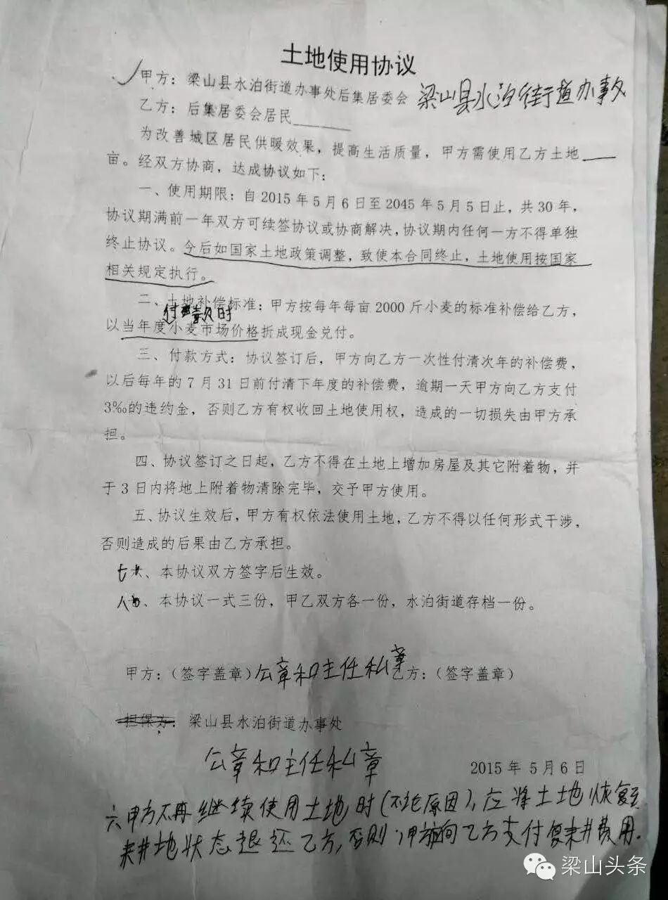 热力公司原本有块自己的建设用地,但后来转卖给菱花集团。在新项目启动后向后集村大队征收农业耕地,而后集村大队再没有征地文件的前提下要求村民签订不合理的补偿条款。