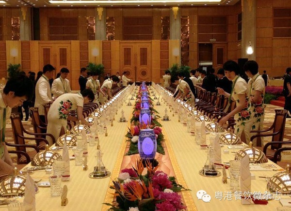 国宴的前厅工作,绝对来不得半点马虎,你看,这帮厅面的美女忙疯了!