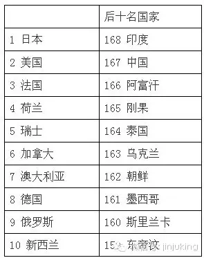 联合国公布全球国民素质道德水平调查及排名