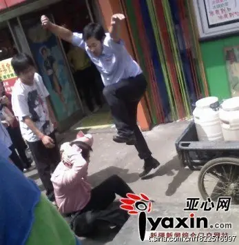 城管飞腿踢小贩