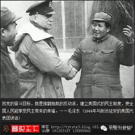 年 青的民主的美国,曾经产生过华盛顿、杰弗逊、林肯、威尔逊,也产生过在这一次世界大战中领导反法西斯战争的民主领袖罗斯福。这些伟大的公民们有一个传统的 特点,就是民主,就是为多数的人民争取自由和民主。美国现在是反法西斯战争中联合国四大主要国之一,担负了彻底消灭法西斯、消灭侵略、建立世界永久和平安 全的重大责任,从美国的革命历史,从美国人民爱好民主自由的传统精神,从美国人民的真正利益,我们深信美国将继续罗斯福的民主政策,不会忽视世界各处,尤 其是中国人民的声音,人民的要求。